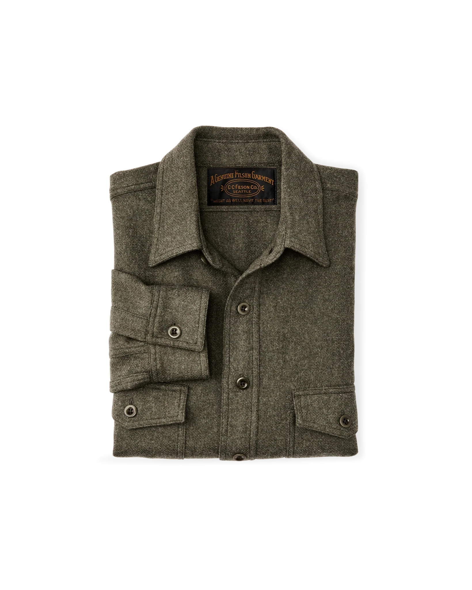 The wool flannel holds warmth, even when soaked. Nylon is added to the yarns for more strength. The hemline curves mirror the asymmetrical cut of the original. The distinctive 3/4-length placket reinforces the button line for strength and structure. The angled pocket bottoms and flaps match an upgraded version of the 1922Â original. Cuffs close tight with sturdy buttons. The collar is cut straight and simple, just as it was a century ago.