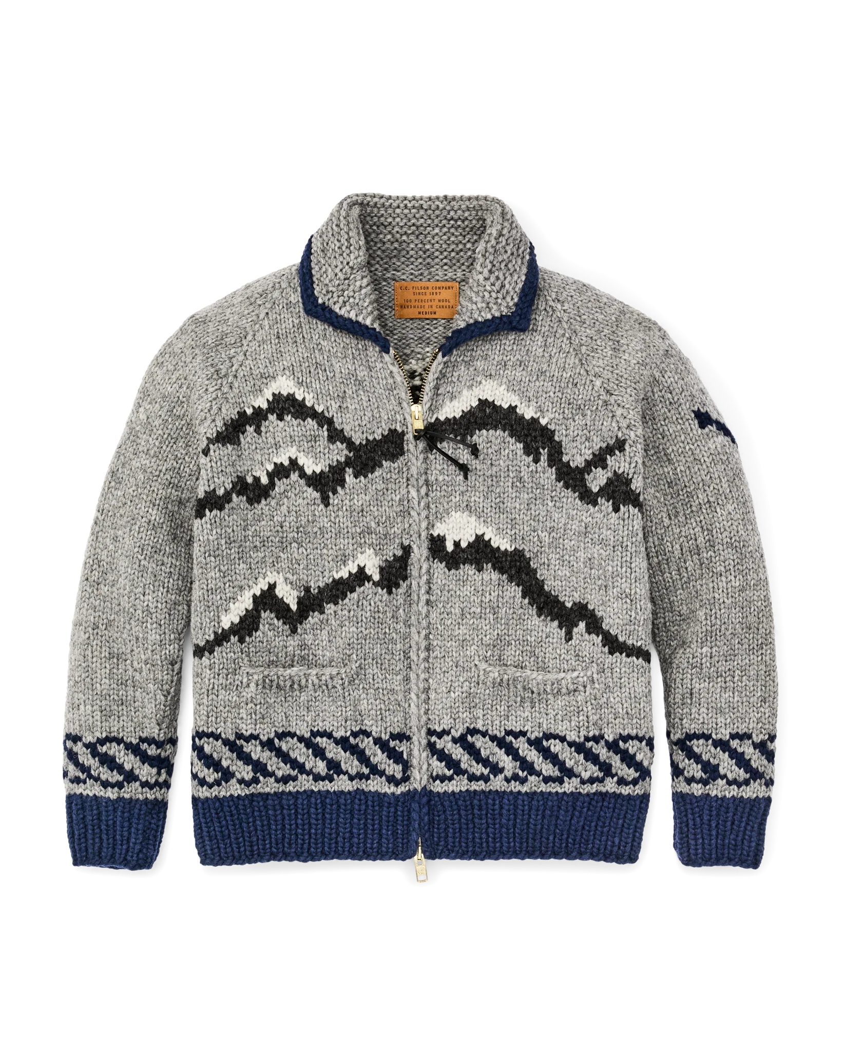 A limited-edition Handmade Sweater crafted in British Columbia with the same time-honored techniques in use since the 1800s. The thick 100% wool yarns are knit by skilled hands into a chunky full-zip sweater that is very breathable and as warm as a coat. The heavy-gauge front zipper opens from top and bottom for versatile temperature regulation. Vertical-entry front pockets. Fold-over collar. With unique graphics for 2025, this heirloom-quality sweater is available in limited quantities.