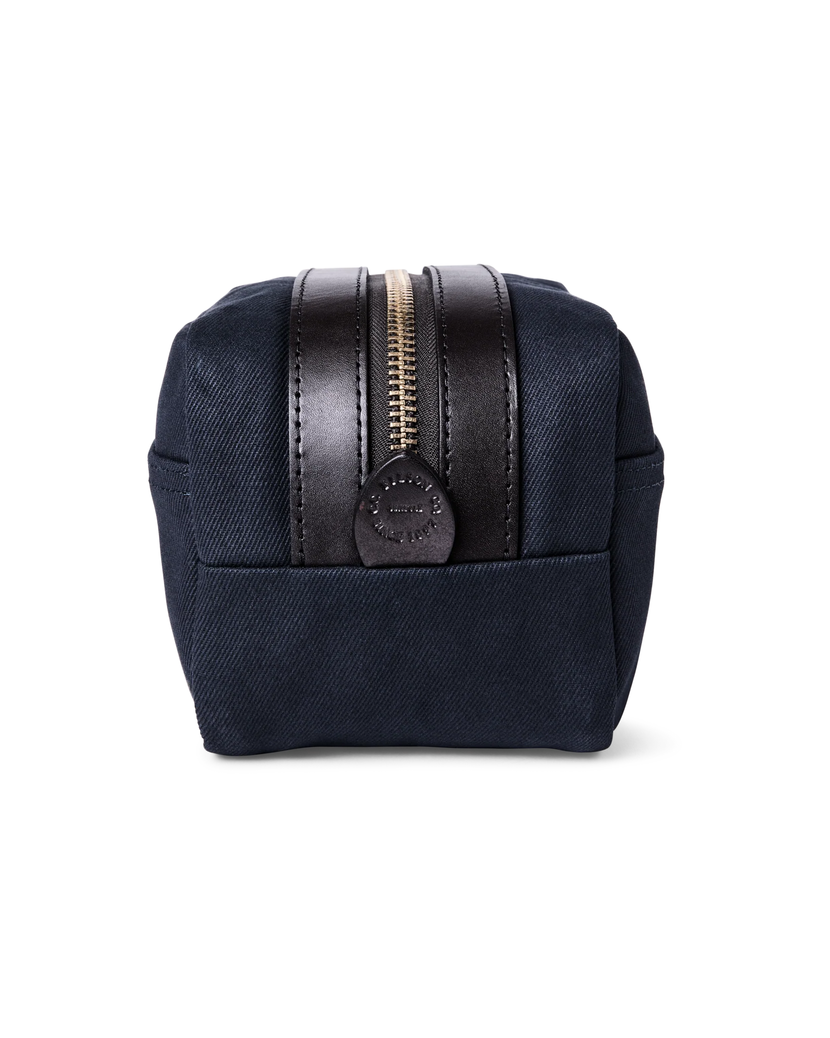 Our Rugged Twill Duffle Bags embody the philosophy that's guided Filson since 1897, making products that are handed down rather than tossed out. Made with our signature Rugged Twill and Bridle Leather, our Travel Kit is made to keep essentials organized and protected for a lifetime of travels. The abrasion-resistant Rugged Twill is lightly waxed for water resistance. The interior is lined with nylon to prevent any spills from escaping into the rest of your luggage. Bridle Leather zipper reinforcements and grab handle. Full-width exterior stow pockets.